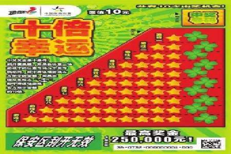 除了“锦鲤”主题即开票外,体彩顶呱刮还推出了“十倍幸运”票面,票面上满是象征幸运的四叶草和幸运星,寓意着好运与惊喜的双重降临。