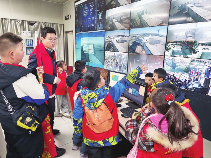 在山西航空产业集团,孩子们走进现场指挥中心,近距离感受“机场大脑”的运作;走进航站楼学习值机知识,聆听安全检查知识讲解并体验,深刻体会劳动创造价值的内涵。