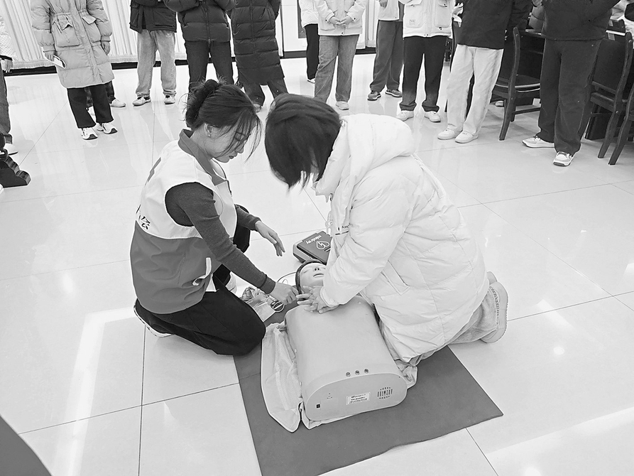 此外,团盂县县委还联合县红十字会,组织2026年寒假实习实训大学生开展了“‘救’在身边 生命教育”急救宣讲培训活动,引导青年以专业技能守护自身与他人安全,在基层实践中传递生命温暖。培训聚焦实用技能,通过理论讲解与实操演示,普及心肺复苏、创伤止血包扎等应急知识,指导学员掌握关键急救手法。实操环节中,大学生快速上手练习,切实提升了应对突发状况的处置能力。