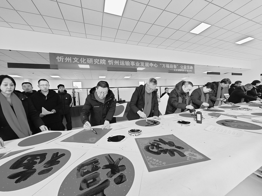 1月26日,忻州文化研究院与忻州市交通运输事业发展中心共同开展了“万福迎春进企业”公益活动,通过书写春联与福字,为企业员工送上新春祝福。这也是忻州文化研究院联手忻州老中青三代书法家开展的第四场写春联送吉祥公益活动。 活动现场墨香四溢,书法家们挥毫泼墨,笔走龙蛇,将真挚祝愿凝于笔端,一副副寓意吉祥的春联、一张张承载祥瑞的福字在行云流水间呈现。企业员工纷纷驻足欣赏、挑选心仪对联,并表示,手写春联更有温度,也更添年味。 本报记者 陈晓平 摄影报道