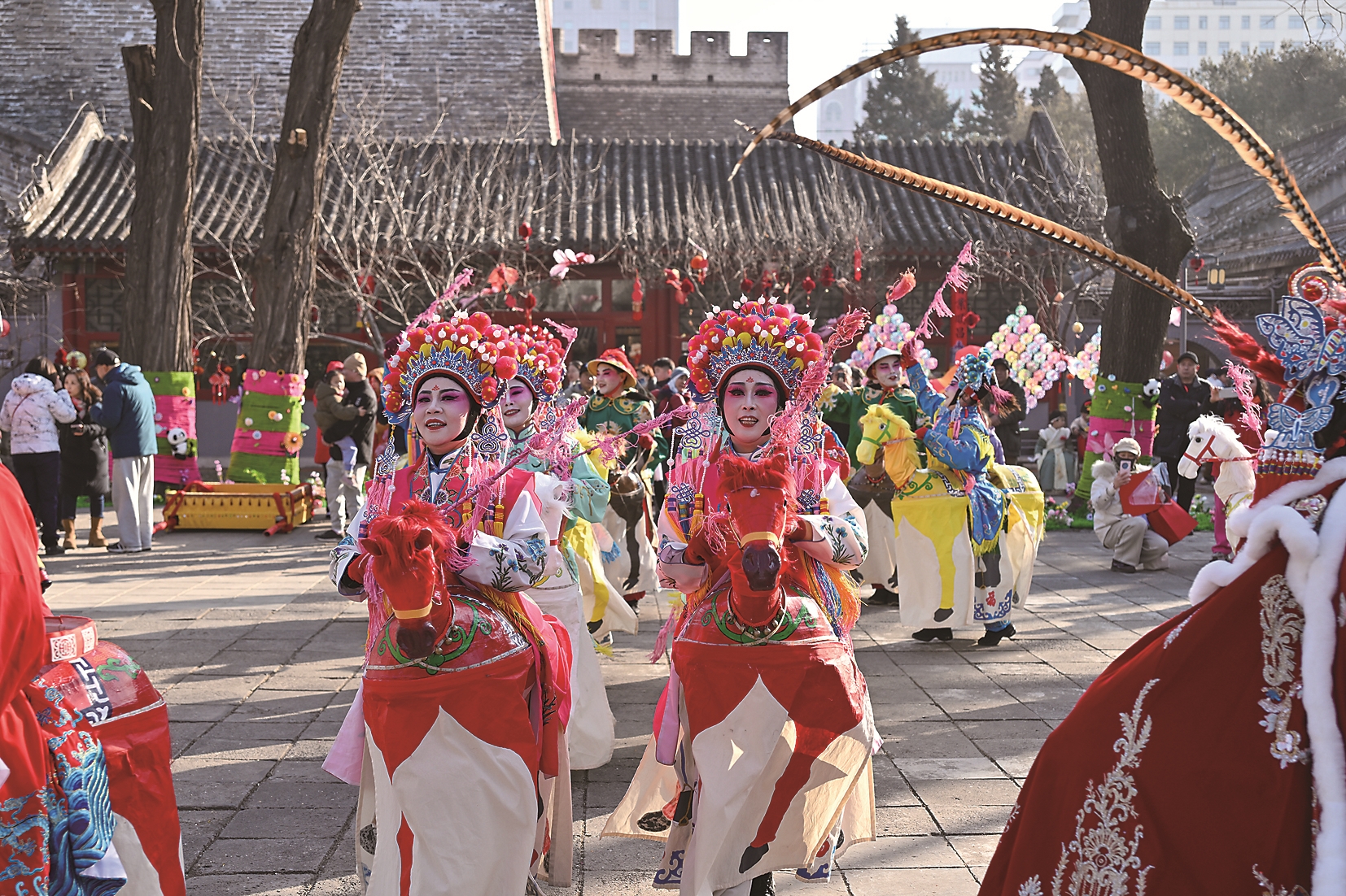 这是活动上的跑竹马表演(2月4日摄)。2月4日是立春,北京市东城区建国门街道第十九届立春文化活动在北京古观象台举行。文化活动重点展示立春时节“打春牛”等传统民俗,结合文艺表演、文旅市集等互动活动,让市民在民俗中体验传统文化的魅力,喜迎春天的到来。 新华社记者 李鑫 摄