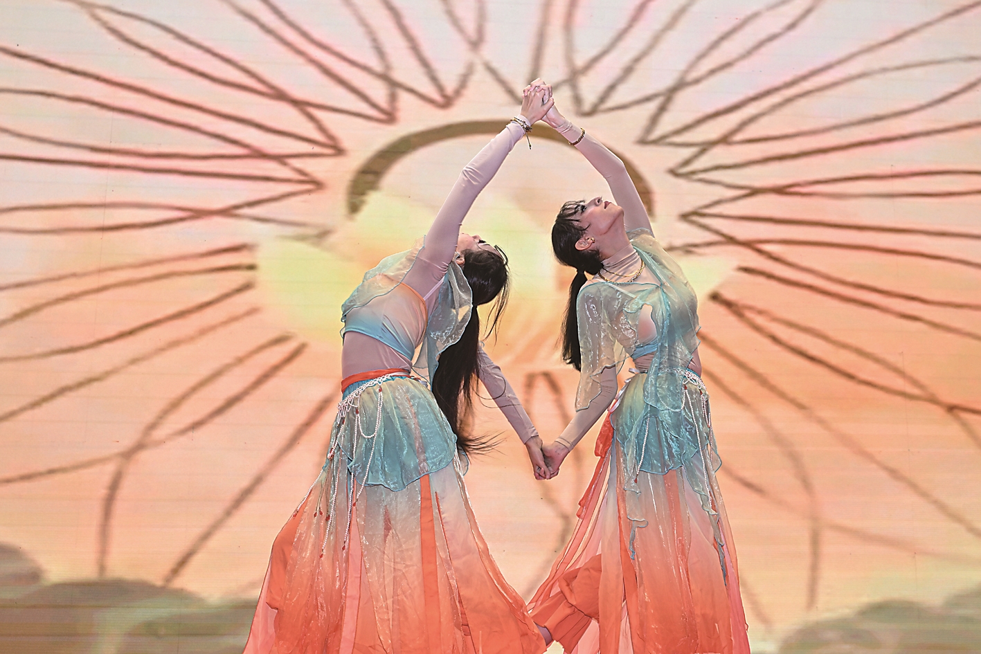2026旅埃华人华侨春节联欢会2月8日在开罗举行。600余名旅埃侨胞、埃及各界友人和留学生代表等欢聚一堂。图为演员在表演舞蹈。 新华社记者 辛梦晨 摄
