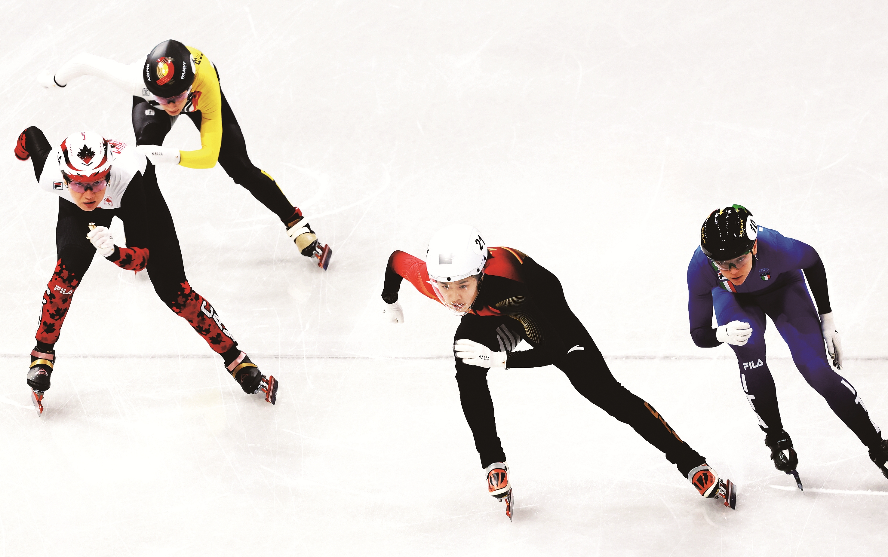 2月10日,在米兰冬奥会短道速滑混合接力决赛中,中国队获得第四名。图为我省选手张楚桐(右二)在比赛中。 本报特派记者 张政 邹鹏亮 摄