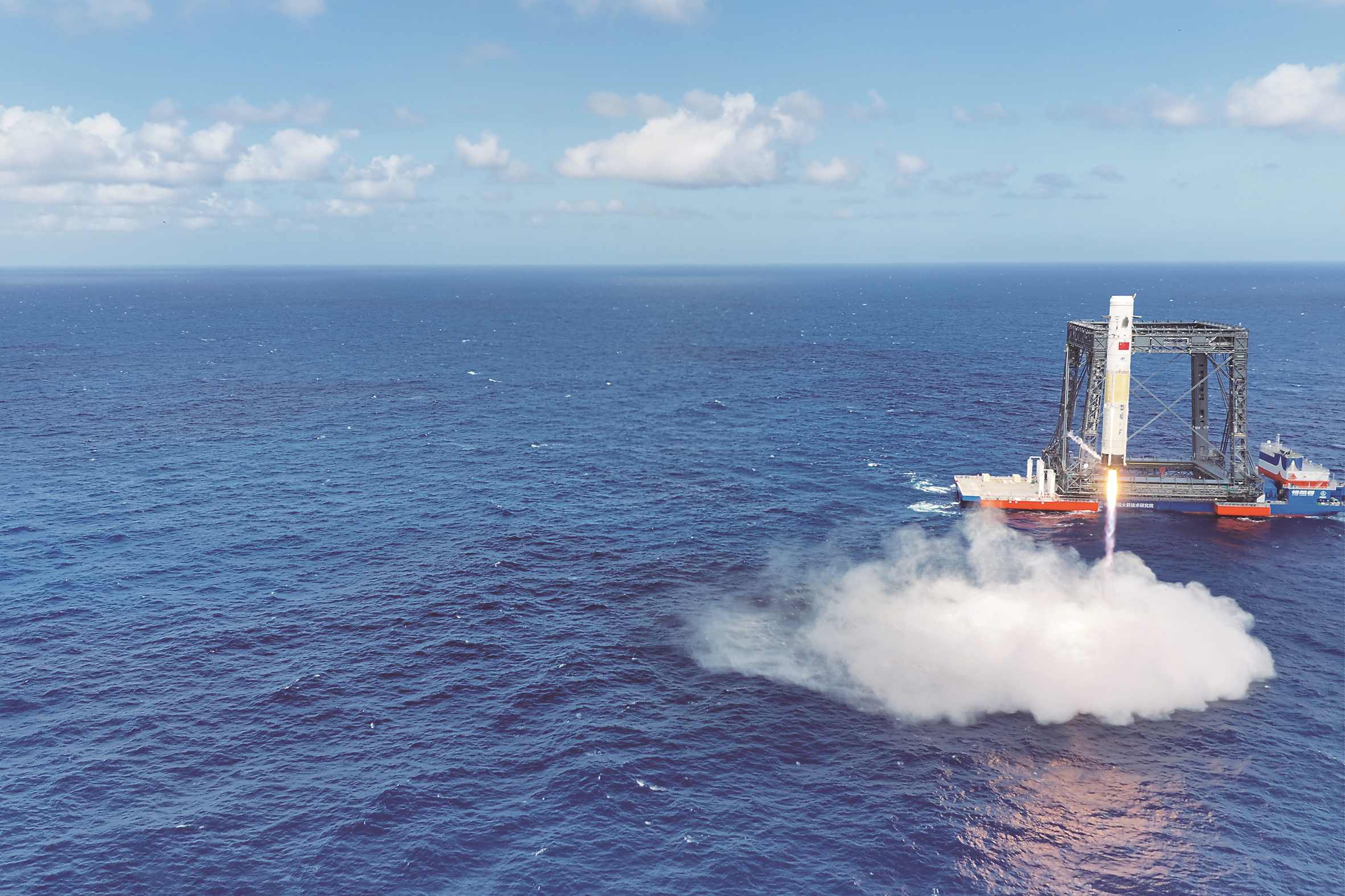 2月11日,我国在文昌航天发射场成功组织实施长征十号运载火箭系统低空演示验证与梦舟载人飞船系统最大动压逃逸飞行试验。长征十号运载火箭一级箭体按程序受控安全溅落于预定海域。 新华社发(韩庆策 摄)