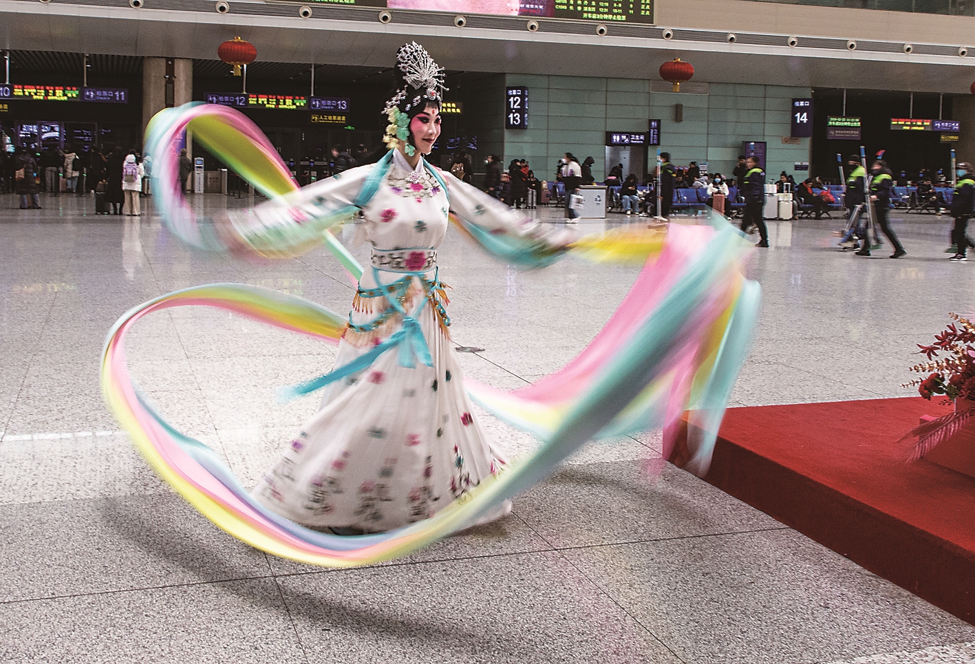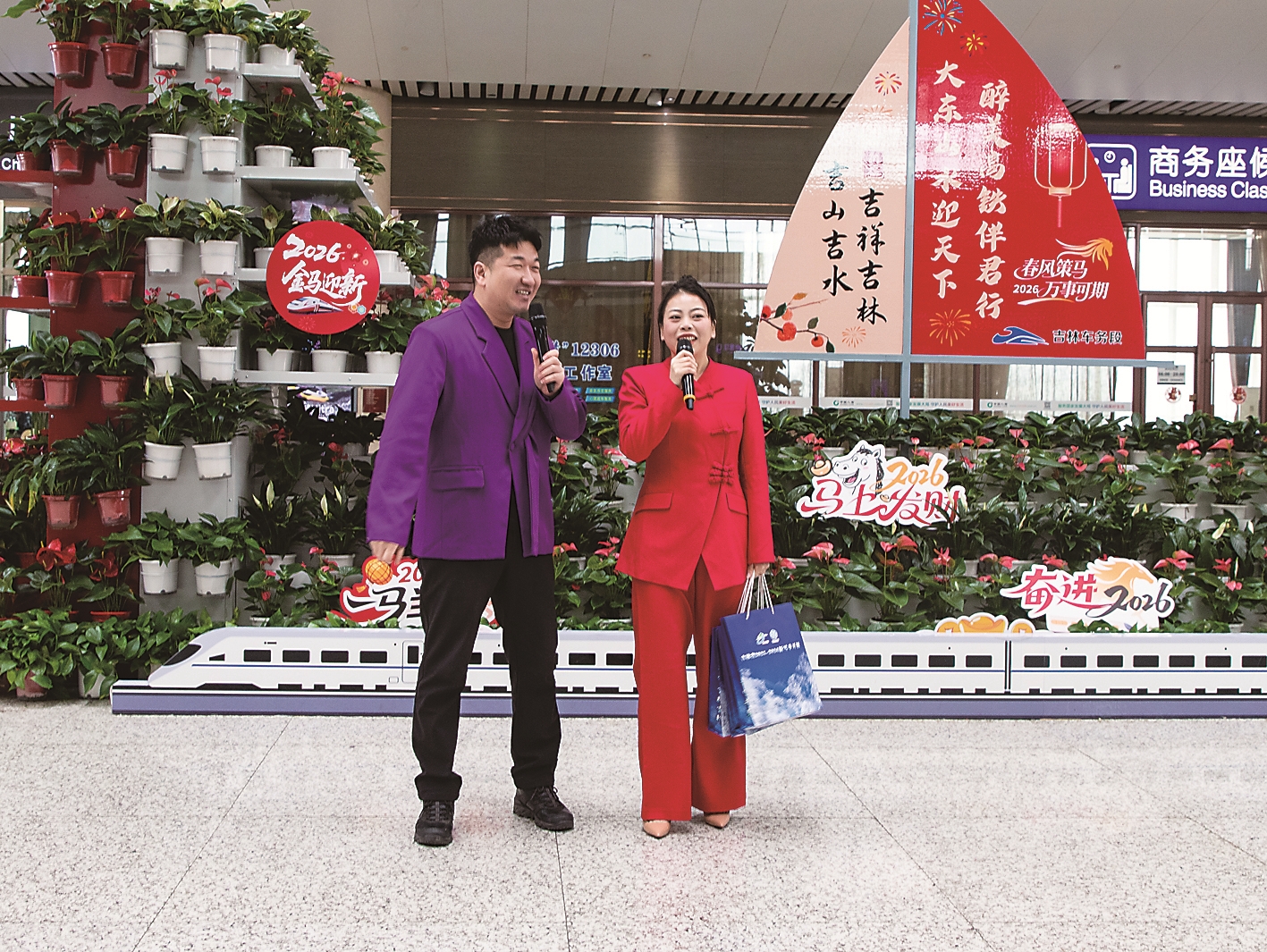 2月23日,吉林市文旅局在吉林站候车大厅举办“吉风吉韵送吉祥”演出活动,用文艺演出温暖旅客归途,让年味与祝福一路相伴。 张景峰 本报记者 李姣月 摄