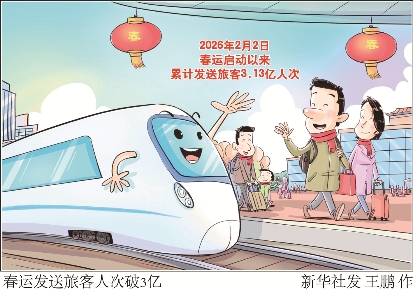 记者2月25日从中国国家铁路集团有限公司获悉,2月24日(正月初八),全国铁路发送旅客1810.1万人次,连续5天保持在1500万人次以上,2月2日春运启动以来累计发送旅客3.13亿人次,运输安全平稳有序。2月25日(正月初九),全国铁路预计发送旅客1665万人次,计划加开旅客列车1549列。 新华社发 王鹏 作