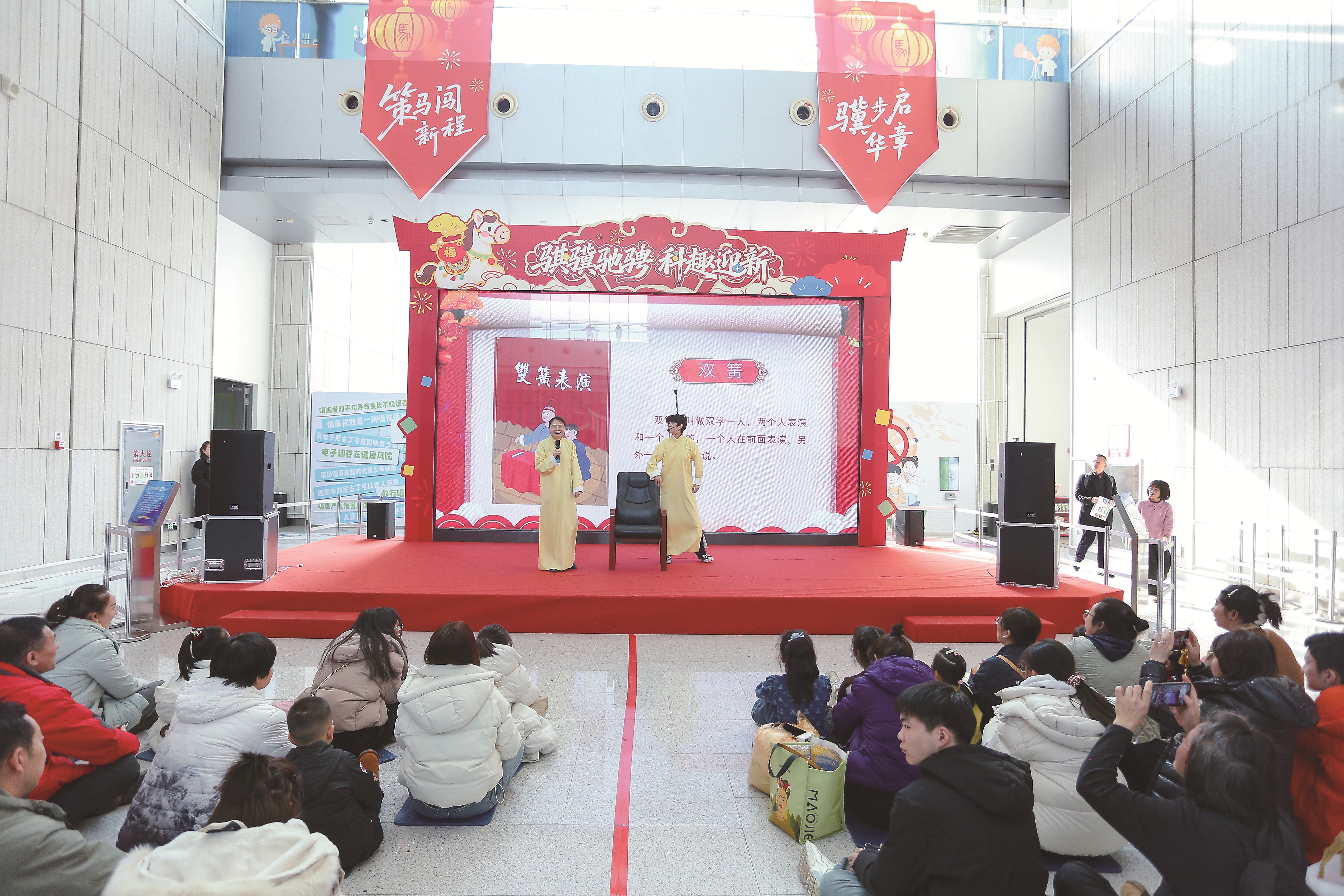 在“骐骥驰骋 科技迎新”科普活动中,“闯关‘马’上出发”以互动游戏“解锁”南北年俗;“‘马’上解谜,科学破局”借助成语猜谜等形式,融合传统知识与科学思维;“指尖香趣”通过多元互动形式探索香料奥秘;“大美吉林总动员”带领观众领略吉林的自然与人文魅力;科普双簧《过大年》则以曲艺形式讲解年俗中的科学知识……活动集沉浸体验、互动挑战于一体,让观众在年味中感受创新,收获知识。