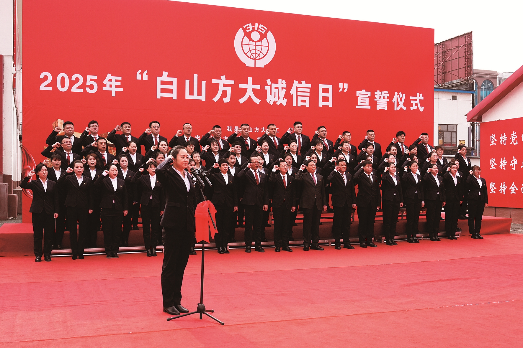 为了使诚实守信变成每一名员工的自觉行动,确保“诚信经商”真正落到实处,每年的消费者权益日,集团都组织开展诚信宣言宣誓仪式,在企业内部营造“人人讲诚信,事事争先进”的浓厚氛围。从2023年开始,集团将每年的3月10日确立为“白山方大诚信日”,持续推动诚信工作向纵深发展。