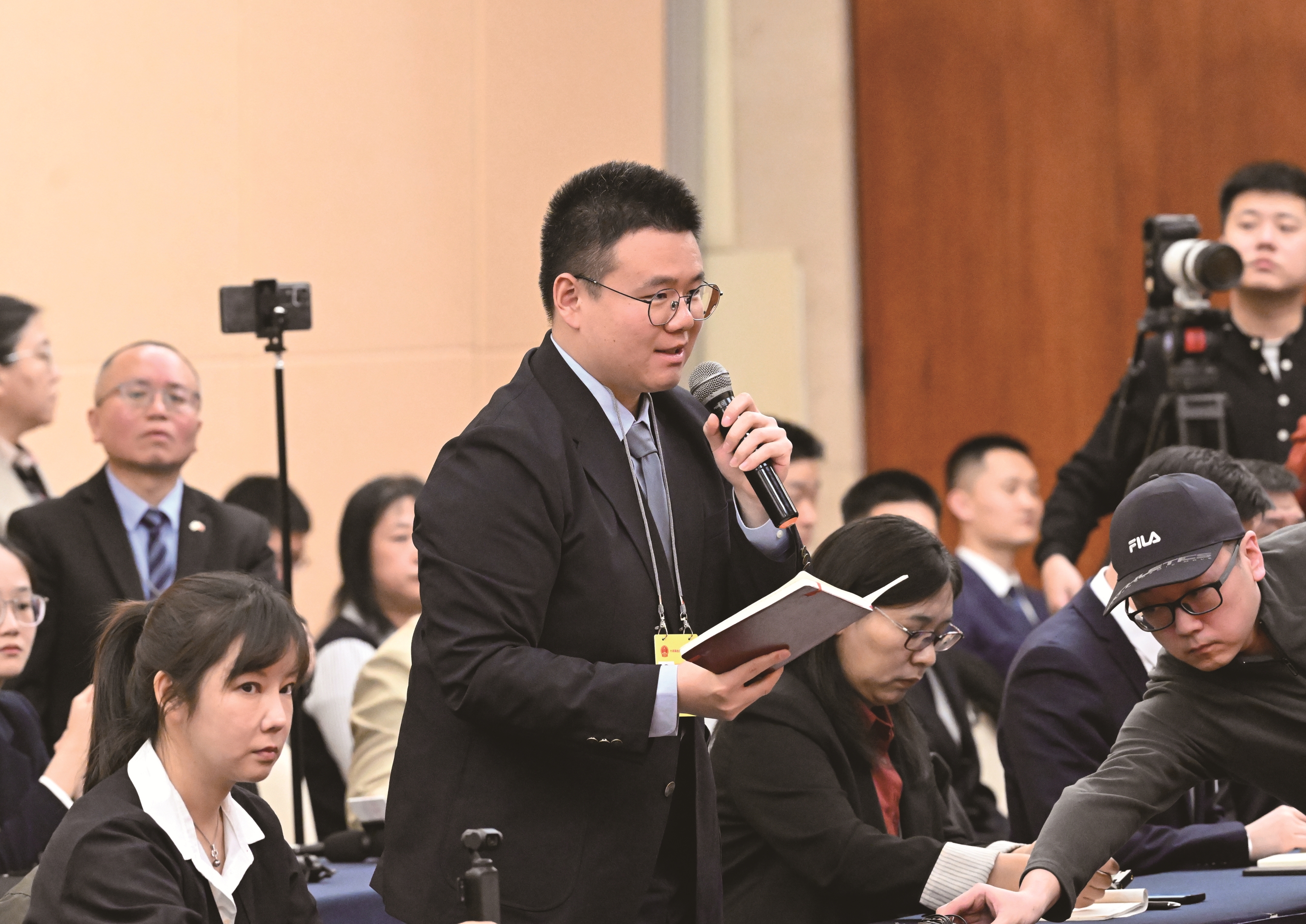 代表审议发言结束后,进入现场提问环节。