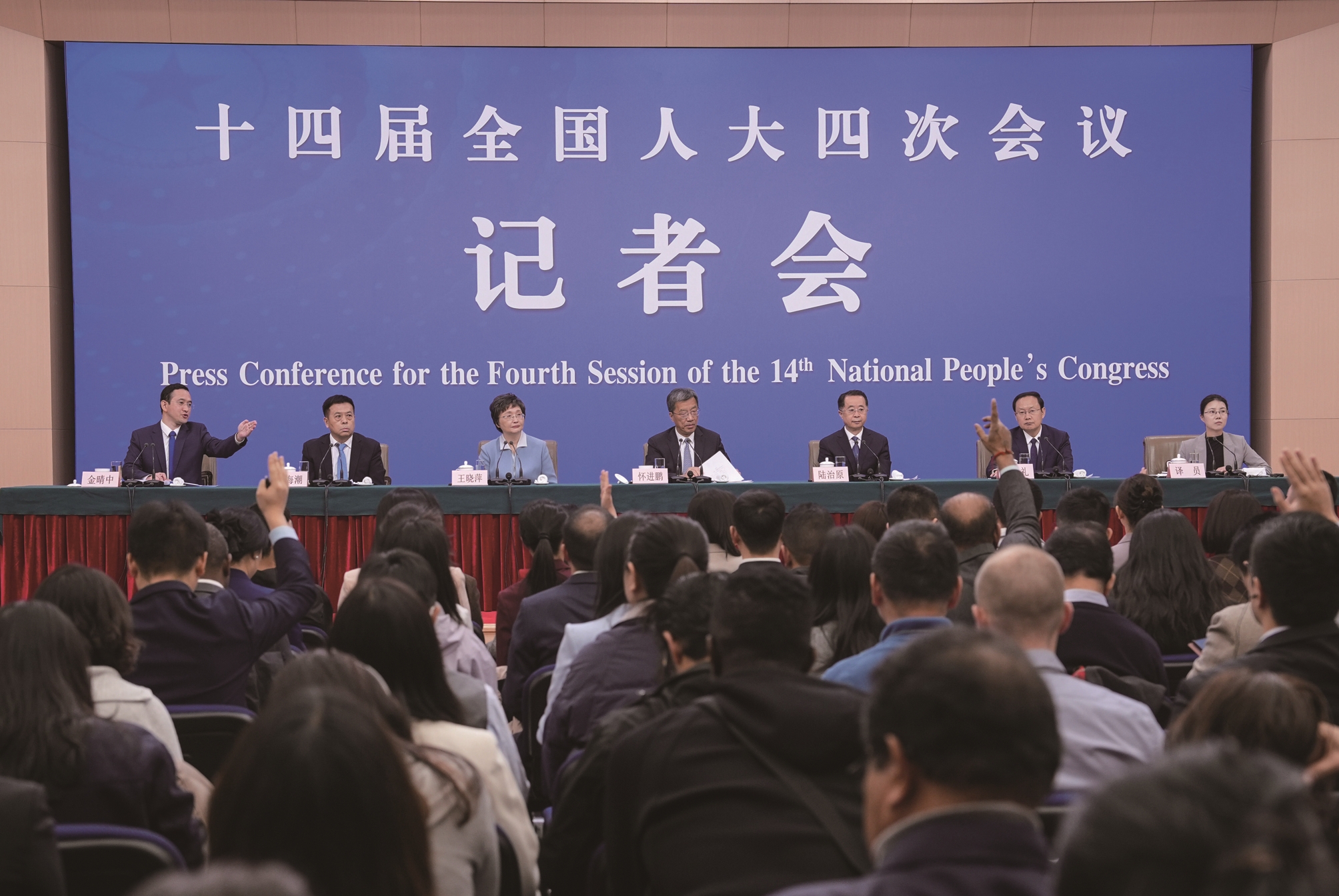 3月7日,十四届全国人大四次会议在北京梅地亚中心新闻发布厅举行记者会。教育部部长怀进鹏、民政部部长陆治原、人力资源和社会保障部部长王晓萍、文化和旅游部部长孙业礼、国家卫生健康委员会主任雷海潮就教育、民政、人力资源和社会保障、文旅、卫生健康等相关问题回答中外记者提问。这是记者举手提问。 新华社记者 王曦 摄
