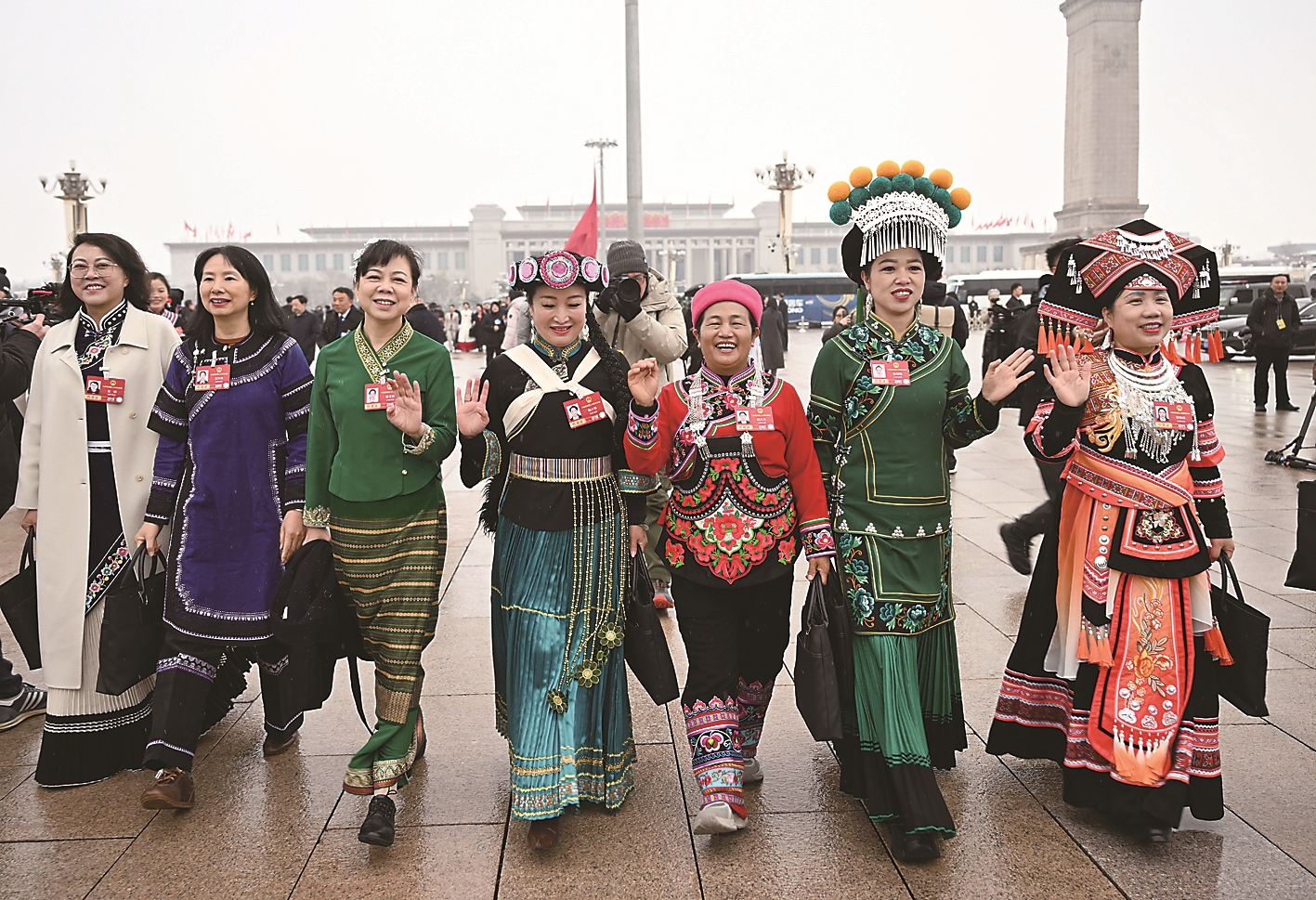 3月5日,第十四届全国人民代表大会第四次会议在北京人民大会堂开幕。这是少数民族人大代表走向会场。 全国两会期间,少数民族代表委员们担当职责使命,积极建言献策。 新华社记者 金良快 摄
