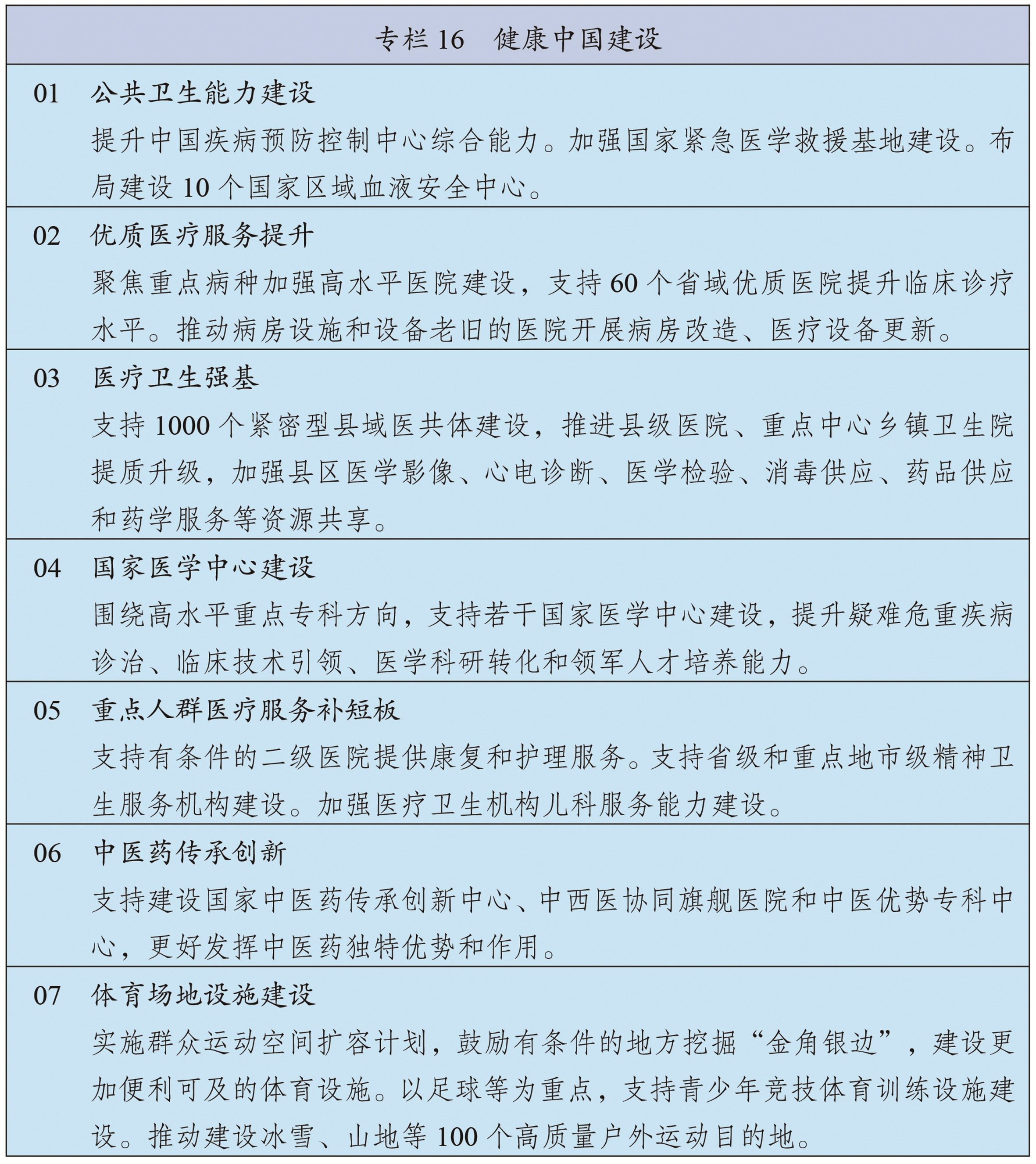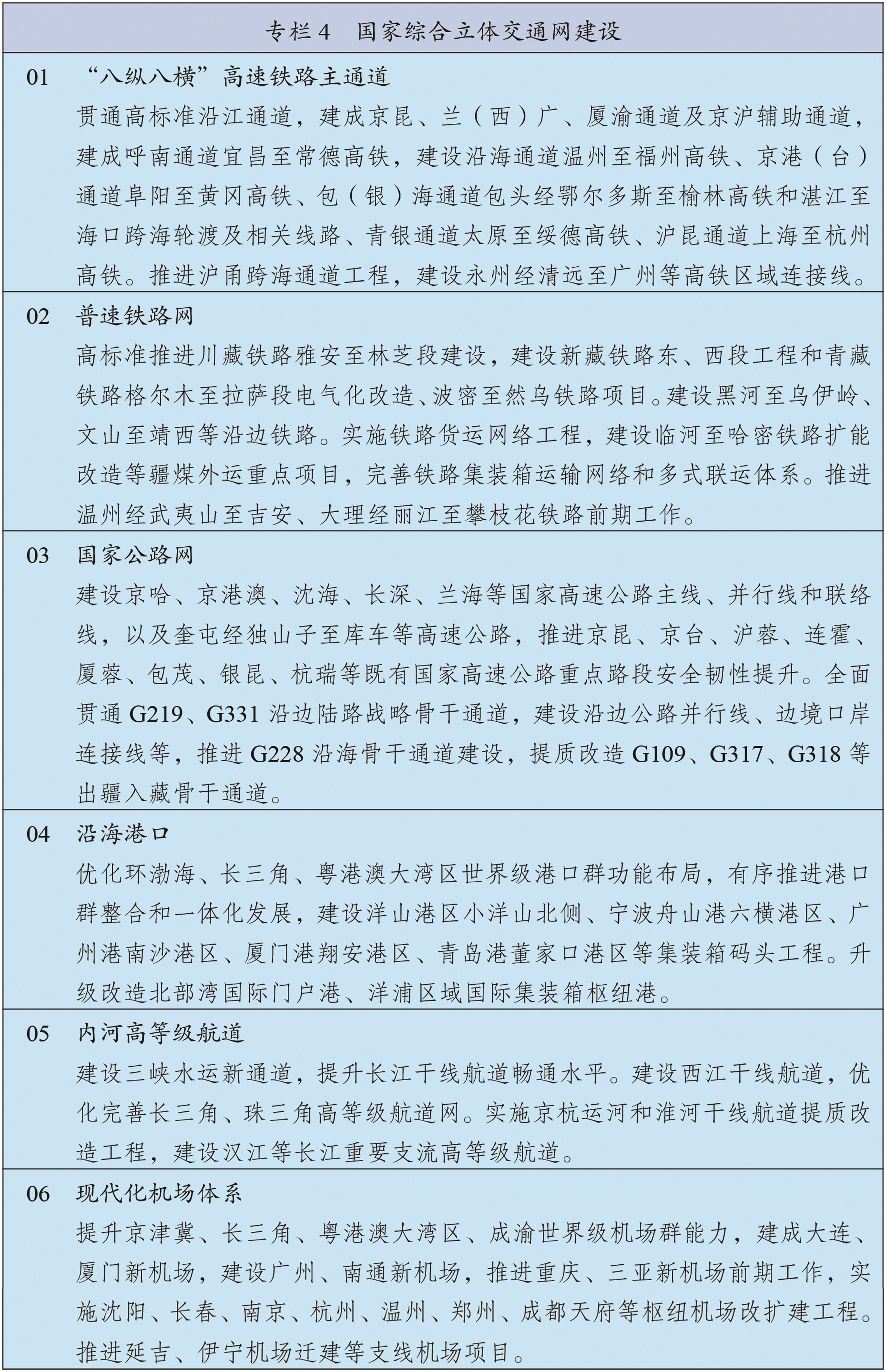 围绕实施国家发展规划,健全政策协调和工作协同机制。将国家发展规划作为宏观政策取向一致性评估的重要依据,确保各类政策发力方向符合国家发展规划要求。强化中期财政规划和年度预算安排对规划实施的财力保障,中央财政资金优先投向规划确定的重大战略任务、重大政策举措和重大工程项目。金融政策要积极支持规划确定的重点发展领域。坚持项目跟着规划走、资金和要素跟着项目走、监管跟着项目和资金走,加快规划确定的重大工程项目审批核准,优先保障规划选址、用地用海和资金需求,单体重大工程项目用地等要素需求由国家统一保障。加强对重大工程项目的伴随式穿透式监管和全过程全周期安全管理。