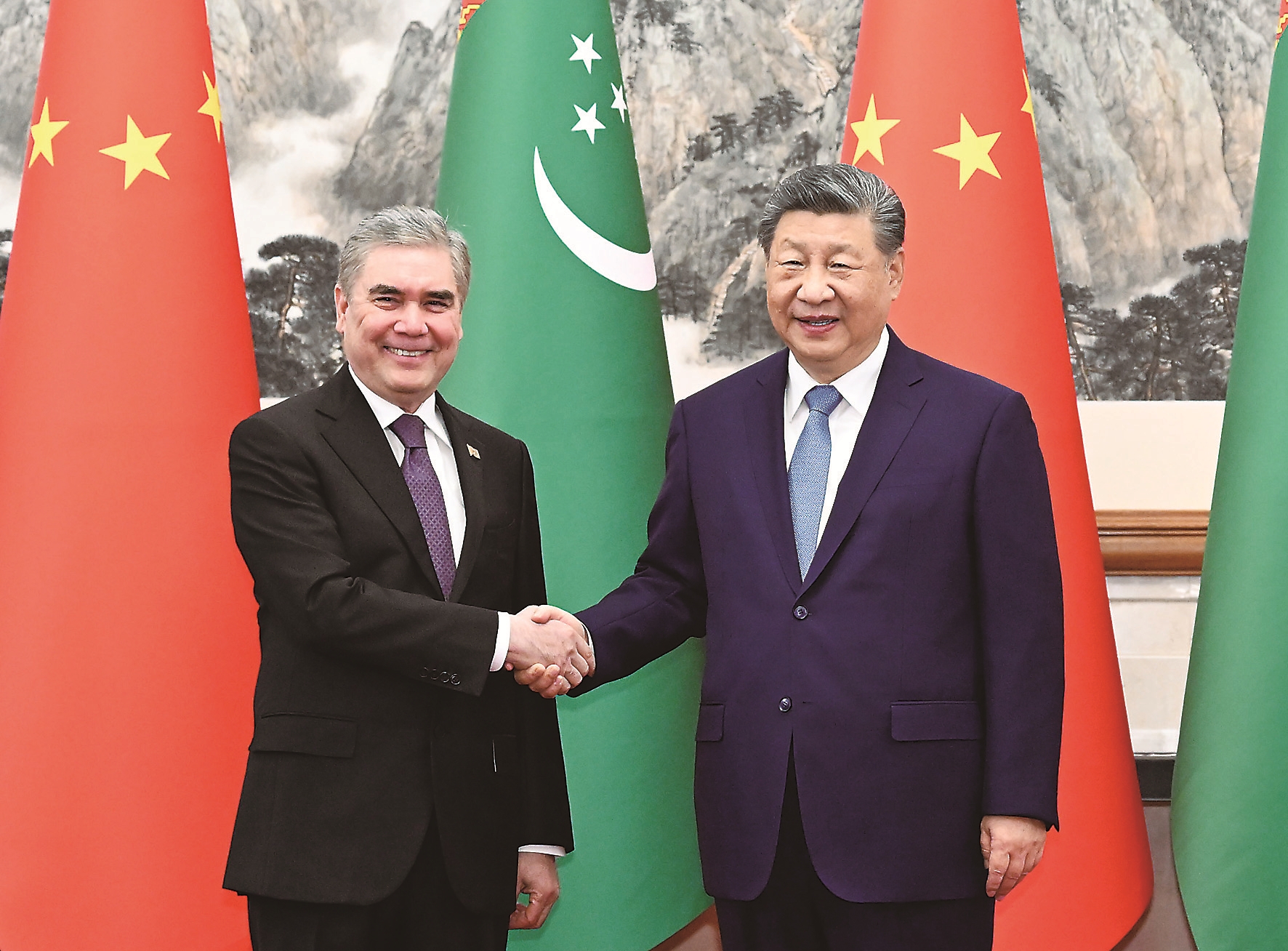 3月18日下午,国家主席习近平在北京钓鱼台国宾馆会见来华进行友好访问的土库曼斯坦民族领袖、人民委员会主席别尔德穆哈梅多夫。 新华社记者 申宏 摄