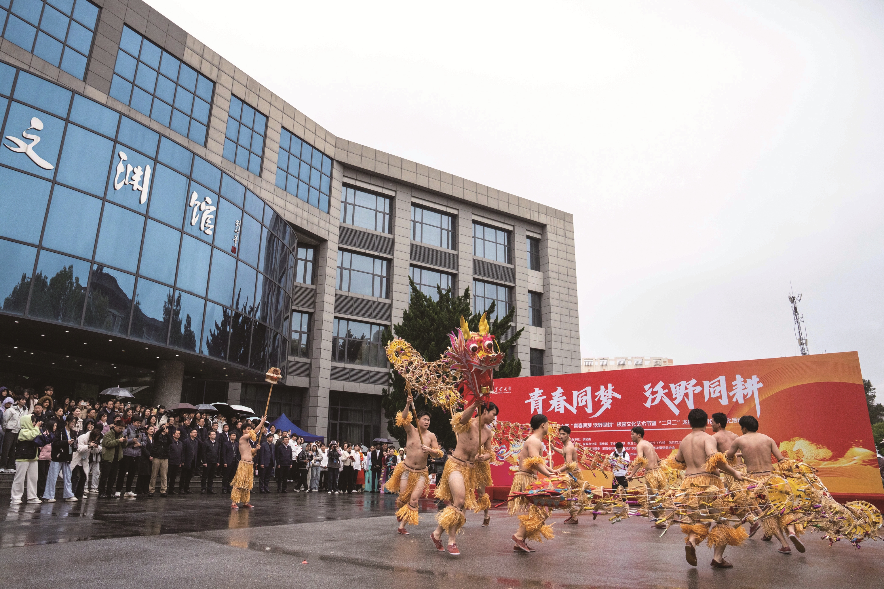 3月19日,学生在湖南农业大学进行舞龙表演。 在农历二月初二“龙抬头”即将来临之际,湖南农业大学开展“二月二”龙抬头农耕体育文化活动,活动以“青春同梦 沃野同耕”为主题,组织学生在校园内进行舞龙表演,并开展农趣运动游戏,让师生近距离感受传统文化的魅力和乐趣。 新华社记者 陈思汗 摄