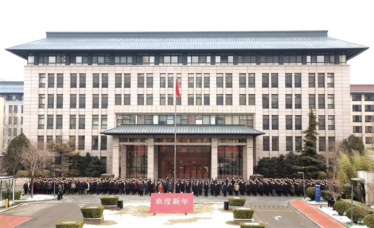 上午8时,升国旗仪式正式开始,在庄严雄壮的国歌声中,鲜艳的五星红旗冉冉升起。参加仪式的全体干部职工精神抖擞、肃然而立,向国旗行注目礼,展现出奋发有为的精神风貌和深厚浓烈的家国情怀。