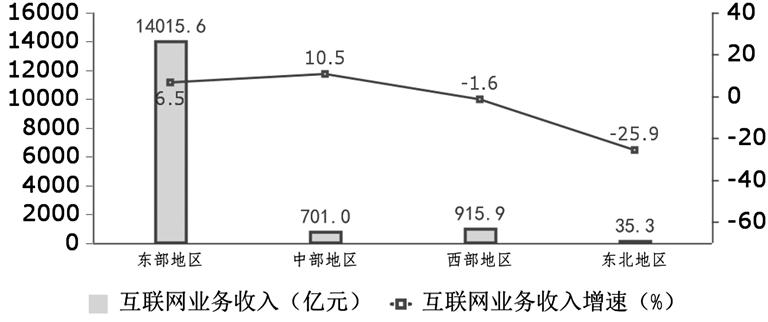 中部地区互联网业务收入增速持续提升。2023年1—11月份,东部地区完成互联网业务收入14016亿元,同比增长6.5%,增速与1—10月份持平,高于全国增速0.4个百分点,占全国互联网业务收入的比重为89.5%。中部地区完成互联网业务收入701亿元,同比增长10.5%,增速较1—10月份提升4个百分点,高于全国增速4.4个百分点。西部地区完成互联网业务收入915.9亿元,同比下降1.6%,降幅较1—10月份扩大0.2个百分点。东北地区完成互联网业务收入35.3亿元,同比下降25.9%,降幅较1—10月份收窄3.2个百分点。