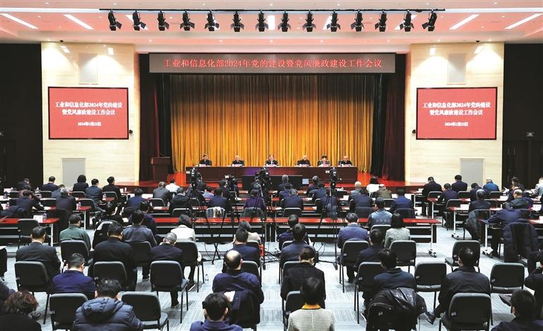 本报讯 1月22日,工业和信息化部召开2024年党的建设暨党风廉政建设工作会议,以习近平新时代中国特色社会主义思想为指导,深入学习贯彻党的二十大和二十届二中全会精神,认真贯彻落实二十届中央纪委三次全会精神,总结2023年工作,部署2024年任务,统一思想认识,提高政治站位,凝聚奋进力量,一刻不停推进全面从严治党,以高质量党建引领保障工业和信息化高质量发展。部党组书记、部长金壮龙出席会议并讲话。部党组成员、中央纪委国家监委驻工业和信息化部纪检监察组组长叶民对工业和信息化部系统全面从严治党提出要求。部党组成员、副部长、直属机关党委书记王江平主持会议。部领导徐晓兰、张云明、谢远生、赵志国、高东升出席会议。