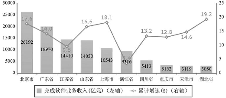 京津冀地区增势突出,长三角地区稳中有升。2023年京津冀地区完成软件业务收入29827亿元,同比增17.1%,高出全国平均水平3.7个百分点;长三角地区完成软件业务收入35437亿元,同比增长10.6%,增速较上年同期提高2.5个百分点。两个地区软件业务收入在全国总收入中的占比分别为24.2%和28.7%。
