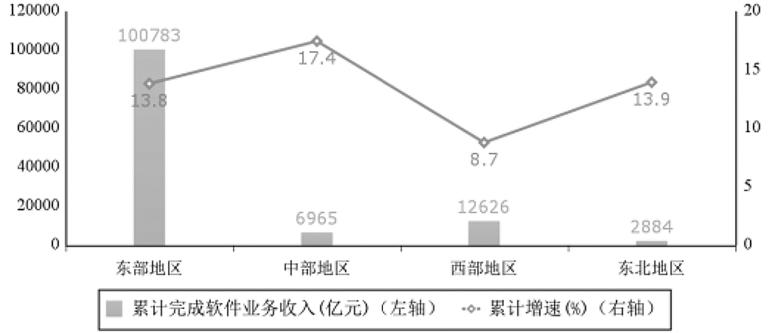 东部、东北地区保持较快增长,中部地区增势突出。2023年,东部、中部、西部和东北地区分别完成软件业务收入100783亿元、6965亿元、12626亿元和2884亿元,分别同比增长13.8%、17.4%、8.7%和13.9%。其中,东部、中部、东北部地区高出全国平均水平0.4个、4.0个和0.5个百分点。四个地区软件业务收入在全国总收入中的占比分别为81.8%、5.7%、10.2%和2.3%。