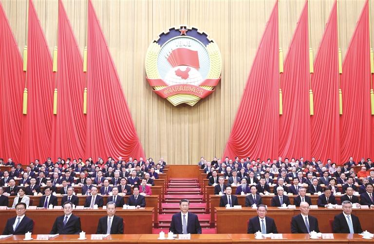 大会首先审议通过了政协第十四届全国委员会第二次会议议程。