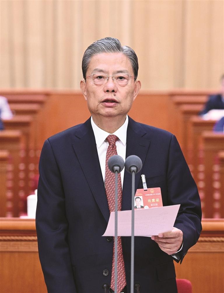 赵乐际指出,大会期间,代表们肩负党和人民重托,以饱满的政治热情和昂扬的精神状态依法履职尽责,认真审议各项报告和议案,会议成果充分体现了党的主张和人民意志的统一,彰显了全过程人民民主和国家根本政治制度的显著优势。