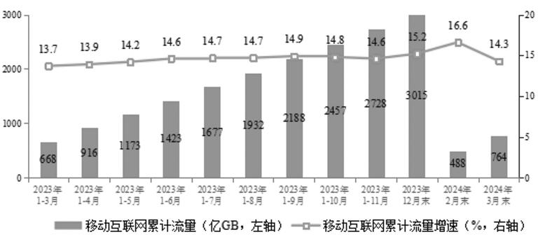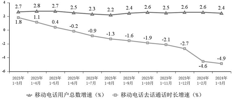 注:1.自2024年2月起,将中国广播电视网络集团有限公司(简称“中国广电”)的5G移动电话用户数、5G移动互联网接入流量、5G移动互联网用户数纳入行业汇总数据,上年同期数据进行同步调整。