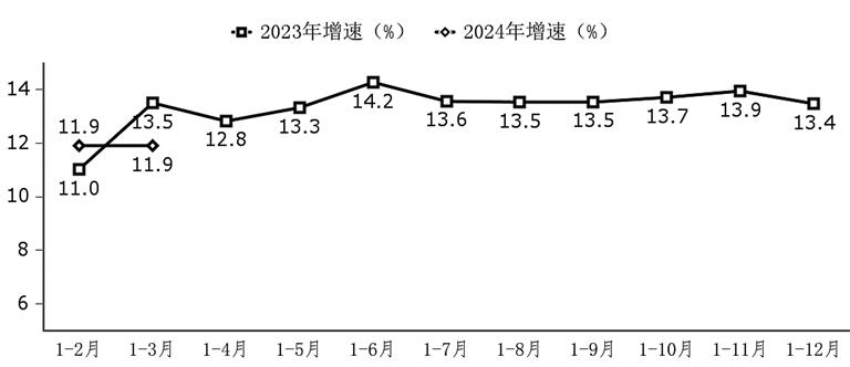 软件业务收入保持两位数增长。第一季度,软件业务收入为28020亿元,同比增长11.9%,增速与1—2月份持平。