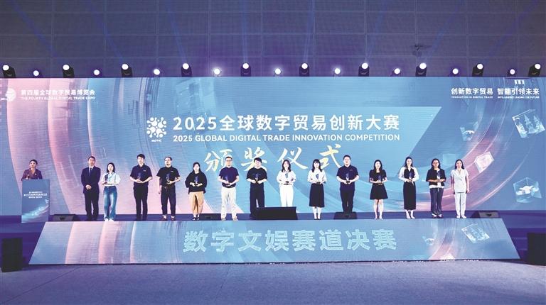 本报讯 记者姬晓婷报道:9月28日,2025全球数字贸易创新大赛(以下简称“数贸大赛”)数字文娱赛道决赛结果出炉。杭州傲雪睿视科技有限公司、杭州容量互娱文化传媒有限公司斩获金奖,永科视觉科技(深圳)有限公司、深圳云天畅想信息科技有限公司、贵州文化演艺产业集团有限责任公司、成都明途科技有限公司摘得银奖,深圳市含道映物科技有限公司、杭州绮祯文化科技有限公司、八维通科技有限公司、杭州秋果计划科技有限公司、华数传媒控股股份有限公司、浙江卫视数字人工作室(浙江新蓝网络传媒有限公司)获得铜奖。