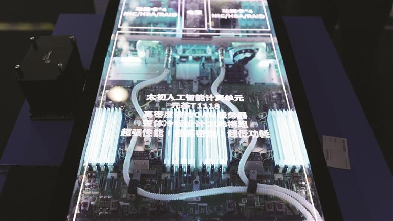 国庆节前夕,在北京2025人工智能计算大会(AICC 2025)现场,一块约100厘米长、50厘米宽的人工智能计算单元模组吸引了众多观众围观、咨询。这是太初(无锡)电子科技有限公司(以下简称“太初元碁”)Teco SuperPod 128高密液冷智算集群展品,一经亮相便成为全场关注的热点。