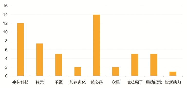 从企业出货量份额来看,中国企业表现突出,宇树科技、智元、乐聚、加速进化、松延动力、优必选出货量位居全球前六位,合计占据全球74.1%的出货量份额。