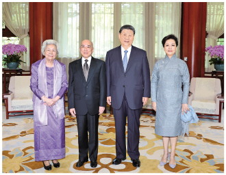 八月二十六日上午,国家主席习近平和夫人彭丽媛在北京中南海亲切会见柬埔寨国王西哈莫尼和太后莫尼列。 新华社记者 黄敬文 摄 |