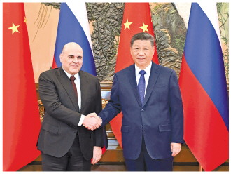 新华社北京11月4日电 记者孙奕 11月4日上午,国家主席习近平在北京人民大会堂会见俄罗斯总理米舒斯京。 习近平指出,今年以来,中俄关系锚定更高水平、更高质量发展目标,在风高浪急的外部环境中笃定前行。维护好、巩固好、发展好中俄关系,是双方的战略抉择。我同普京总统在莫斯科和北京两次会晤,就中俄关系中的战略性、全局性问题深入交流,作出新的谋划和部署。双方要保持密切协调,落实好我同普京总统达成的重要共识,着眼两国和两国人民的根本利益,把中俄合作的蛋糕做好,也为世界和平与发展作出新的更大贡献。 习近平强调,双方要稳步扩大相互投资,开展好能源、互联互通、农业、航空航天等传统领域合作;挖掘人工智能、数字经济、绿色发展等新业态合作潜力,打造新的合作增长点;密切人文交流,让两国社会各界更多人士参与到中俄友好合作的事业中来。前不久,中共二十届四中全会审议通过“十五五”规划建议,对中国未来5年经济社会发展作出顶层设计和战略擘画。中国将全面推进中国式现代化,坚定不移推动经济社会高质量发展,扩大高水平对外开放。中方愿同俄方一道,推动中国“十五五”规划同俄罗斯经济社会发展战略更好对接,不断造福两国人民。 米舒斯京转达普京总统对习近平主席的亲切问候和良好祝愿。米舒斯京表示,祝贺中共二十届四中全会成功举行,相信中国一定会顺利实现“十五五”规划建议确定的目标,取得更大经济社会发展成就。两国元首今年两次会晤,对俄中关系发展作出战略规划,巩固了俄中全面战略协作伙伴关系。俄方愿同中方一道,落实两国元首达成的重要共识,深化经贸、科技、能源、农业、数字经济等领域合作,密切人文交流,加强多边协调配合,推动两国合作取得更多成果。 王毅参加会见。