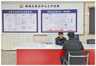 10月23日,在天津市静海区综治中心大厅,静海公安分局派驻综治中心民警接待前来咨询的群众,详细解答问题。 本报记者 范瑞恒 本报通讯员 吴昊康 摄