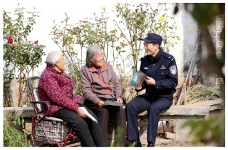 近日,江苏省宿迁市公安局宿豫分局曹集派出所组织民警走访,向群众征集治安防控与便民服务意见建议,及时掌握社情民意,助力平安乡村建设。图为民警向群众宣传安全防范知识。 本报记者 罗莎莎 本报通讯员 王力 摄
