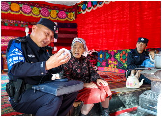 ▲ 11月5日,新疆出入境边防检查总站克孜勒苏柯尔克孜自治州边境管理支队加克拉克边境派出所组织民警深入辖区草场和群众家中,开展冬季安全防范宣传,通过发放《农村防火安全小贴士》,结合真实案例,讲解冬季常见火灾预防措施。图为民警在牧民家中指导一氧化碳报警器的正确安装和使用方法。