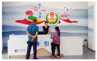 | 图为福建省建宁县综治中心导引台工作人员接待来访群众。 |