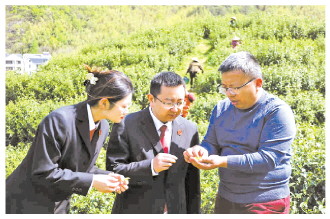| 图为浙江省金华市婺城区法院法官回访重整的制茶企业,深入茶山了解茶叶长势和采摘工作。 赵阳天 摄 |