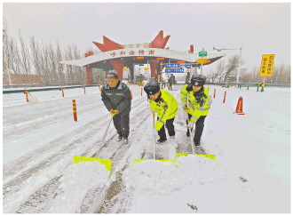 ▲ 近日,内蒙古自治区呼和浩特市迎来降雪天气,呼和浩特市公安局交通管理支队启动雪天交通应急响应预案,全市120个主要路口提前部署警力,全力保障群众安全有序通行。图为民警清理道路积雪。