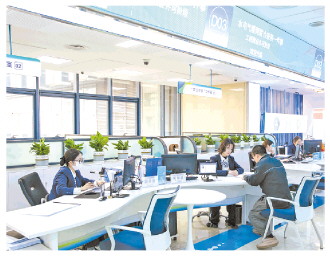 | 图为12月19日,济南市水电气暖网联合报装一件事服务专窗工作人员为企业提供申报咨询帮办服务。