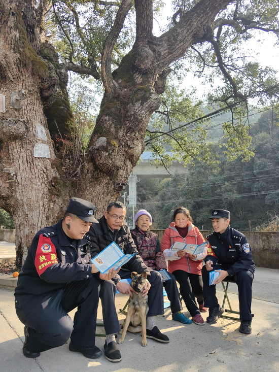 图① 连日来,南昌铁路公安局鹰潭铁路公安处婺源站派出所民警深入铁路沿线村庄,向群众宣传道路交通、反诈、禁毒等知识。图为民警教村民如何识别电信网络诈骗。