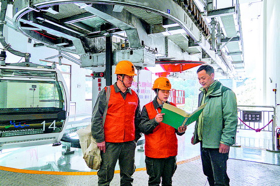 ▲ 近日,国网湖州供电公司共产党员服务队走进浙江省湖州市德清县莫干山江南瑶坞旅游度假区,对景区的配电设施和用电设备进行检查,并开展电力普法宣传活动。图为服务队队员向景区工作人员讲解安全用电知识。 周健 摄