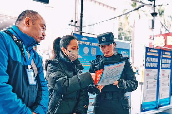 ① ② ③ 图① 2月2日,2026年春运拉开帷幕,昆明火车站铁路民警加强安检盯控、巡逻防控力度,在进站口、候车室、出站通道等人流密集区域加大值守力度,全力保障旅客安全出行。图为民警在进站口值守。 本报记者 常煜 本报通讯员 周银 摄 图② 春运首日,江西省武宁县公安局交管大队民辅警在武宁县客运中心以及主要道路,向驾驶人和乘客进行交通安全提醒并赠送春运平安福贴。图为2月2日,民警向客运中心司机赠送春运福贴。 本报记者 黄辉 本报通讯员 熊遥 摄 图③ 春运于2月2日正式启动。南宁铁路公安局南宁公安处精心组织系列活动,通过开展法治宣传、提供暖心服务等方式,为春运旅客送上特别的“平安礼”。图为民警向旅客宣传安全出行知识。 本报记者 吴良艺 本报通讯员 范佳苗 张磊 摄
