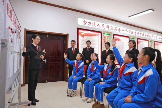 近日,黑龙江省伊春市中级人民法院以“青葵法苑”品牌为引领,开展少年宣讲团培育活动。图为伊春中院法官向学生们授课。 本报记者 张冲 本报通讯员 崔皓 摄
