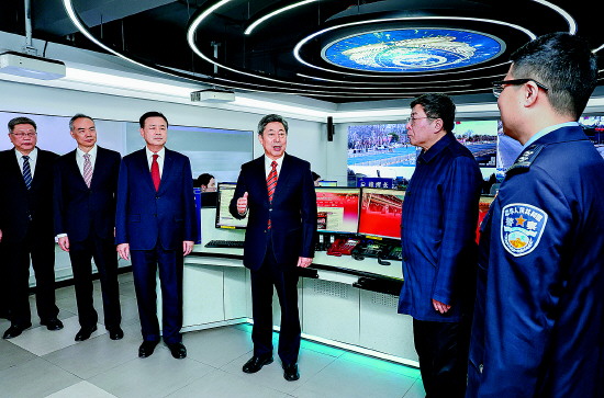 在天安门地区公安分局,陈文清详细了解春节期间重点地区人流变化和安保勤务部署、社会治安整体防控等情况。他指出,守护社会安全稳定、确保万家平安团圆是政法机关职责所在。要准确把握今年春节安全稳定新形势新特点,加强值班值守、工作调度、应急处置,依法惩治违法犯罪活动,深化矛盾纠纷排查化解,强化社会治安巡逻防控,做好重点部位、人员密集场所安全防范,加强大型活动、道路交通安全管理,用心用情做好便民利民工作,全力保障春节期间社会安定、人民安宁。