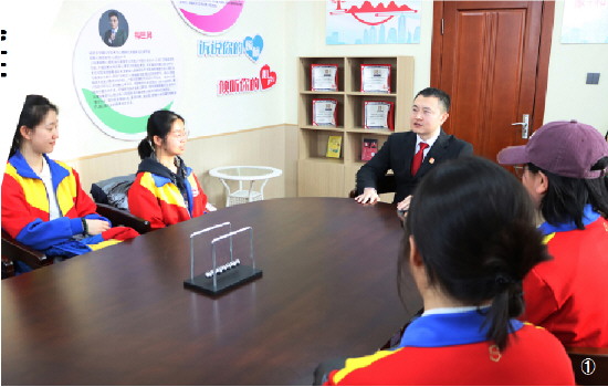图① 郎骏在心理疏导室就校园欺凌、逃学等问题与学生沟通。