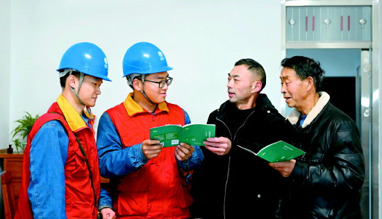 ▲ 连日来,国网枞阳县供电公司积极践行主动文化,组织共产党员服务队走进返乡人员家中,了解用电需求,排查用电隐患,开展安全用电宣传活动。图为服务队队员向村民讲解安全用电知识。 周里 摄