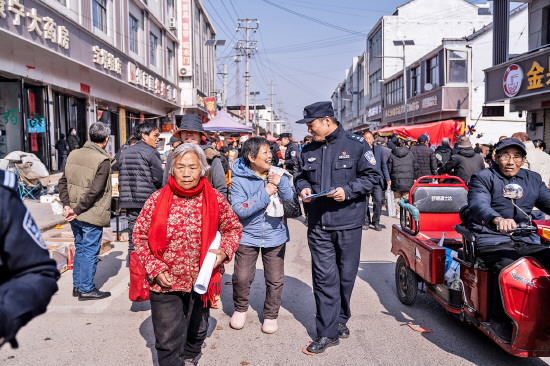 “陌生电话小心接,转账信息不要信”“千万要注意防火安全,火源一定要跟摊位保持距离”……记者注意到,在集市巡逻的民警同时肩负着“宣传队”的工作,他们通过流动喇叭循环播报交通法规与治安常识,同步开展摊位安全排查、隐患告知等工作,把安全送到摊位前。
