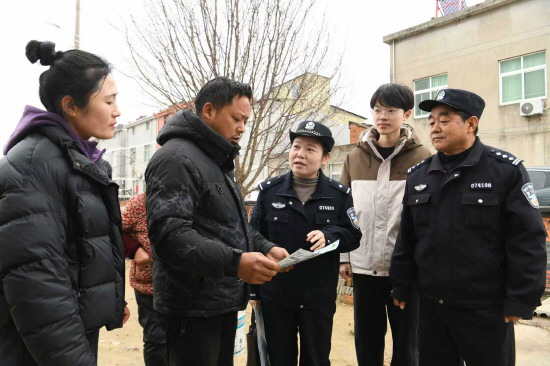 2月25日,安徽省含山县公安局清溪派出所组织民辅警深入辖区村庄院落,以群众“听得懂、记得住、用得上”的方式,将安全知识送到群众身边。图为民警向群众开展反诈宣传。
