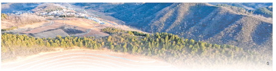图① 图为湖北房县门古寺镇叶家河水土治理基地,水平梯田环绕山腰,固水保土。