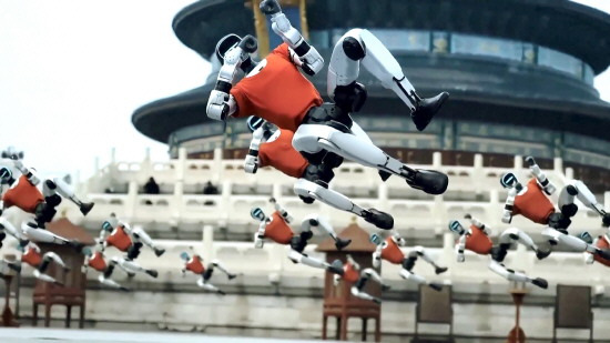 醉拳、剑舞、肘部大回环、连续三次单腿后空翻……这些人类千锤百炼才可能“神功大成”的高难度动作,机器人不仅完成得威风凛凛,还颇具中华武术的神韵,一套套丝滑又连贯的招式让观众看得酣畅淋漓。